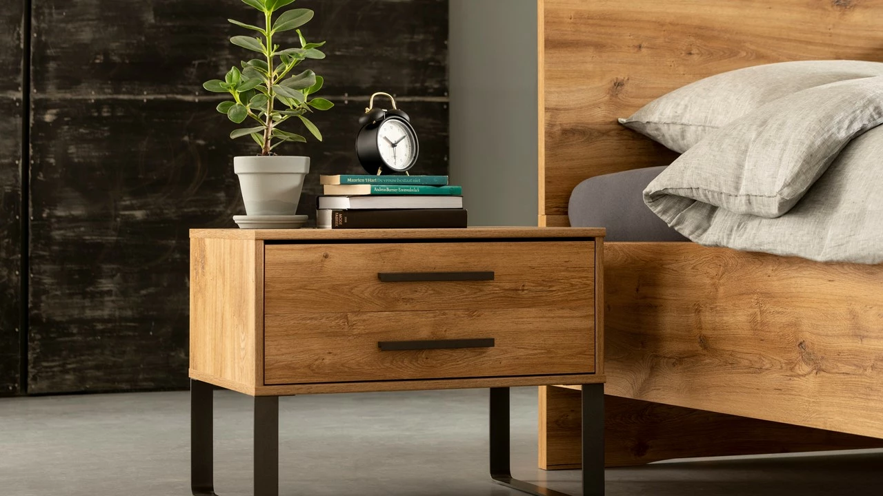 Met dit Bed Craft geef je je slaapkamer een industriële look. Het eikenhout in combinatie met de metalen poten zorgen voor een rustige maar tegelijkertijd ook ruige uitstraling in de slaapkamer. Het bed kun je eenvoudig combineren met andere Craft meubelen om dezelfde uitstraling door te trekken in de slaapkamer.