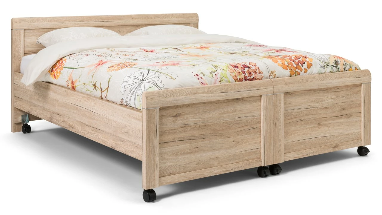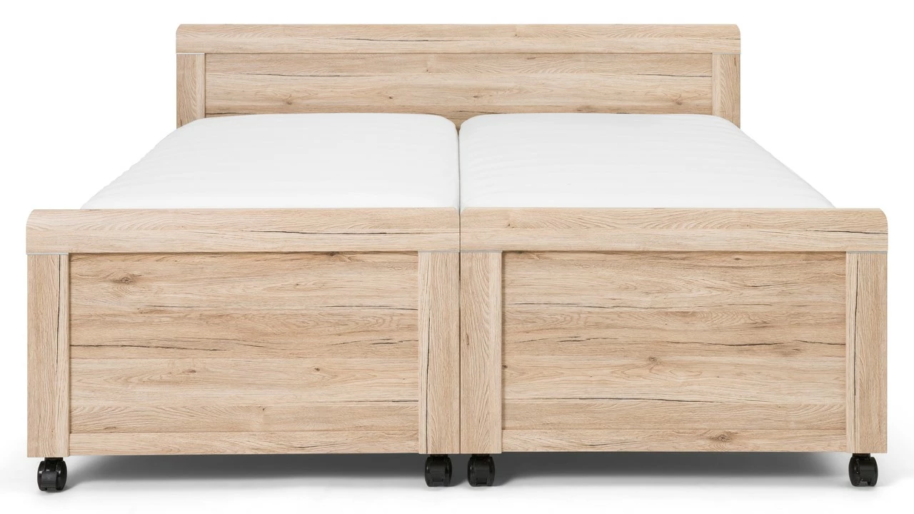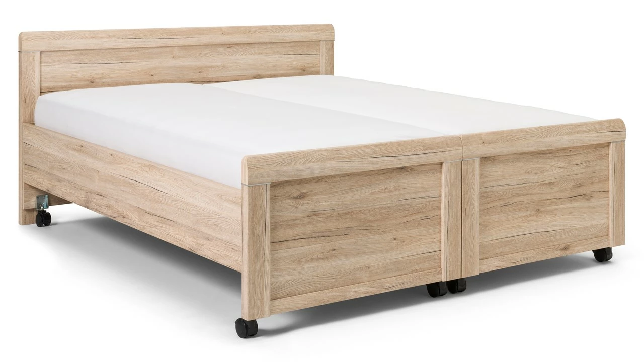 Ga voor comfort en gemak met het Bed Elba uitrijdbaar. Dit bed heeft een prettige hoge instap waardoor je makkelijker in én uit bed kunt komen. Zeker als je last hebt van lichamelijke klachten is dit bed een absolute aanrader. Daarnaast bestaat dit bed uit twee losse eenpersoonsbedden die je uit elkaar kunt rollen. Het bed heeft een minimalistisch design met subtiele rondingen op het hoofd- en voetbord.
