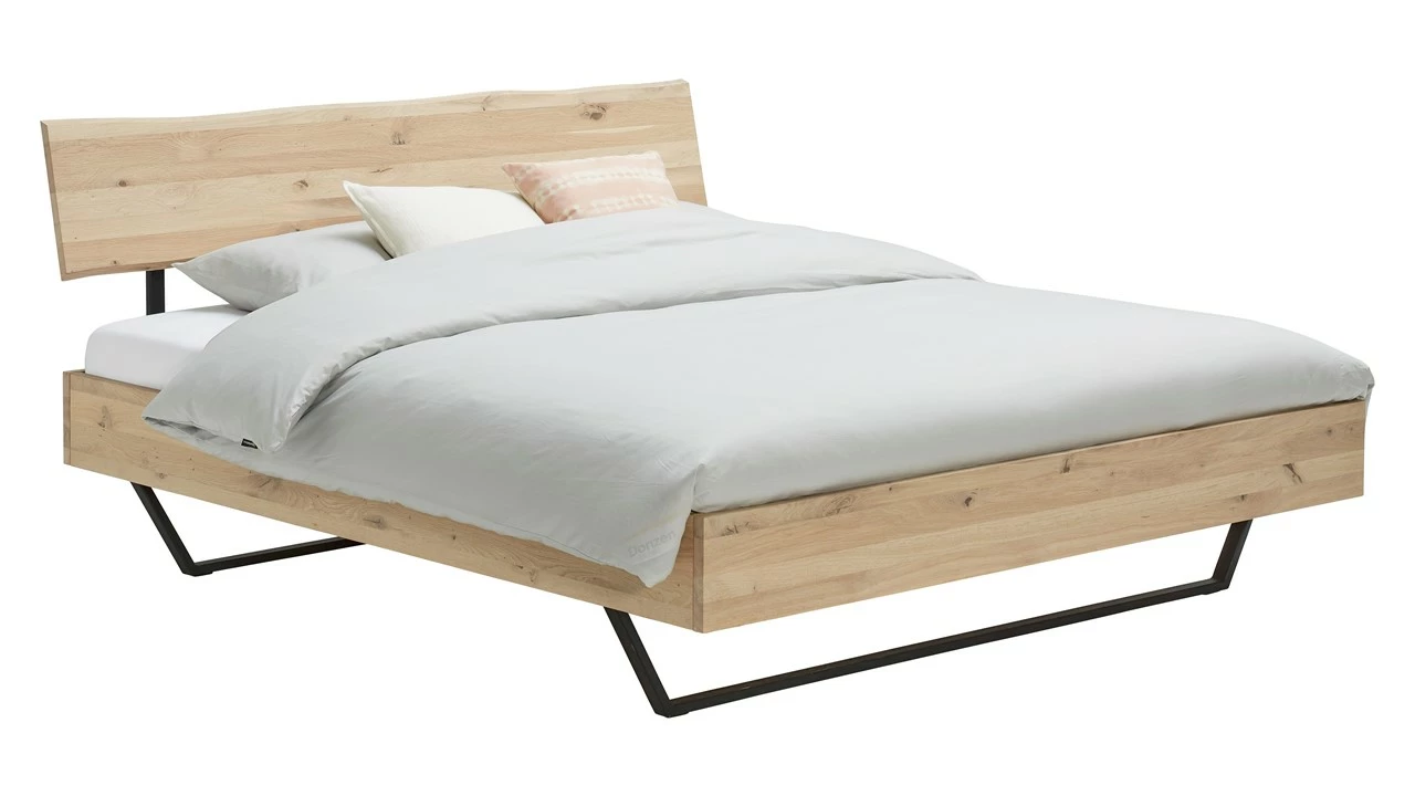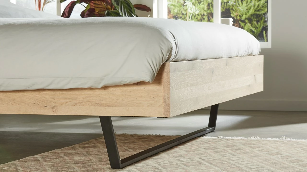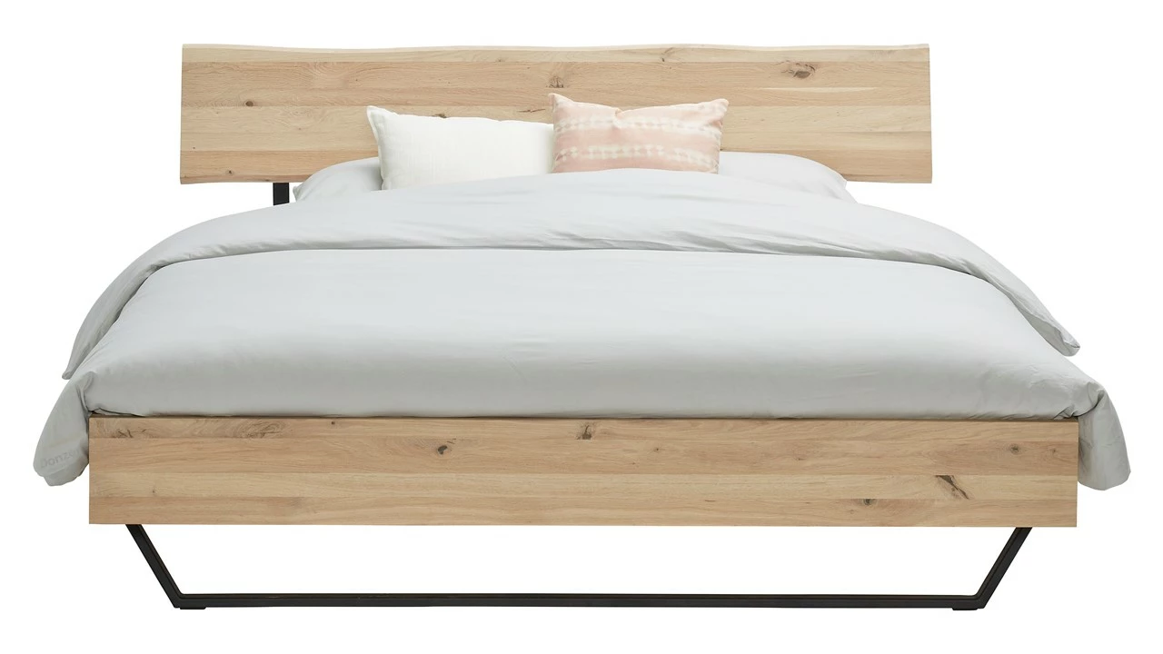 Maak je bed weer het middelpunt van de slaapkamer met dit robuuste Bed Elessar Raw. Dit stevige eikenhouten bed met metalen poten heeft een lichte industriële uitstraling. Het hoofdbord heeft natuurlijke golvende contouren waardoor geen enkel bed hetzelfde is. Het bed is ook perfect te combineren met Nachtkast Elessar.