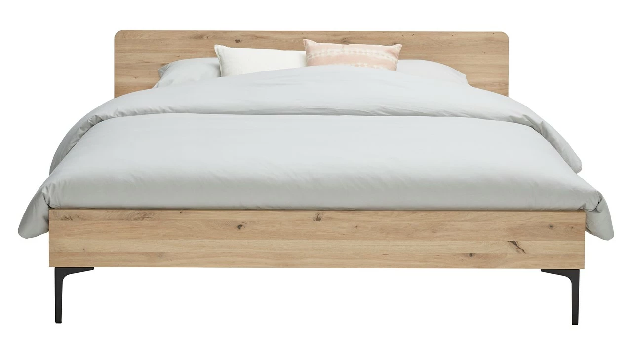 Maak je bed weer het middelpunt van de slaapkamer met dit elegante en natuurlijke Bed Elessar Rondo. Het hoofdbord met ronde hoeken en de stijlvolle metalen poten zorgen voor een lichte industriële uitstraling. Het bed is gemaakt van stevig eikenhout en is ook perfect te combineren met Nachtkast Elessar.