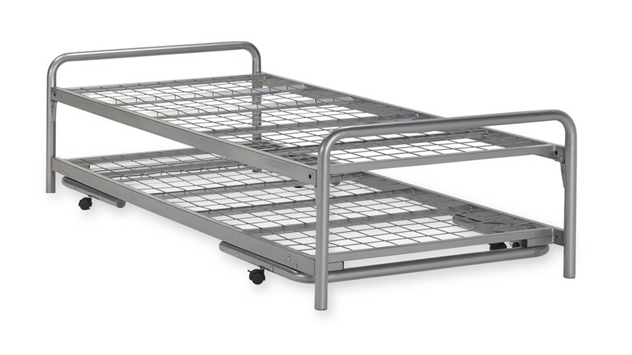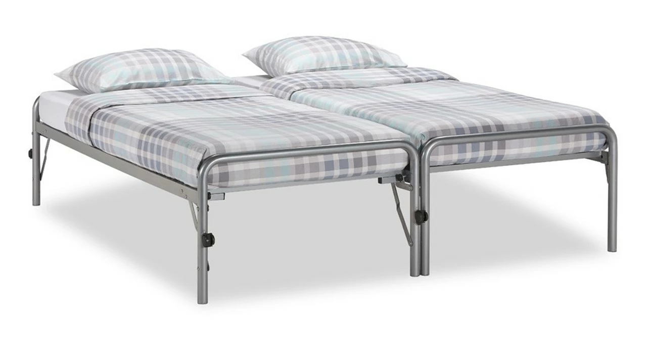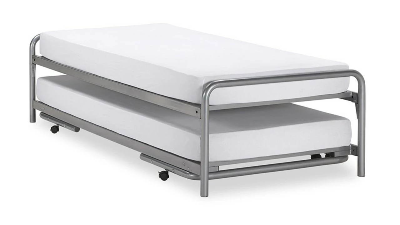 Voor dit bedrag kun je Bed met onderschuifbed Doppia toch niet laten staan? Je krijgt twee logeerbedden op de vloerruimte van één. Ideaal als je af en toe logés over de vloer hebt maar niet constant een lomp groot bed in de weg wilt hebben staan. Dit bed is te gebruiken als twee losse 1-persoonsbedden of als één 2-persoonsbed.