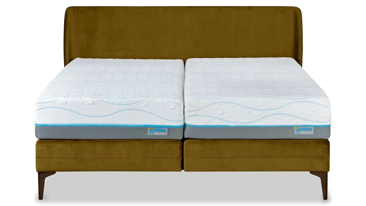 Op deze boxspring geniet je van een heerlijke en meer dan complete nachtrust dankzij perfecte ondersteuning van het comfort van twee losse boxen voorzien van pocketveren. Hier bovenop lig het M line Slow Motion 2 matras. Deze zorgt voor voortreffelijke ondersteuning en een goede drukverdeling van je lichaam. Het matras stemt zich perfect af op je lichaam, doordat de binnenkant bestaat uit een open celstructuur. Jouw lichaamswarmte blijft goed in balans, dit zorgt voor een aangenaam slaapklimaat. Welke beweging je ook maakt of houding je aanneemt, dit matras past zich perfect aan. Ideaal voor mensen met gewrichts- en spierklachten. Daarnaast lig je ook nog eens heerlijk stevig. Dat is genieten!