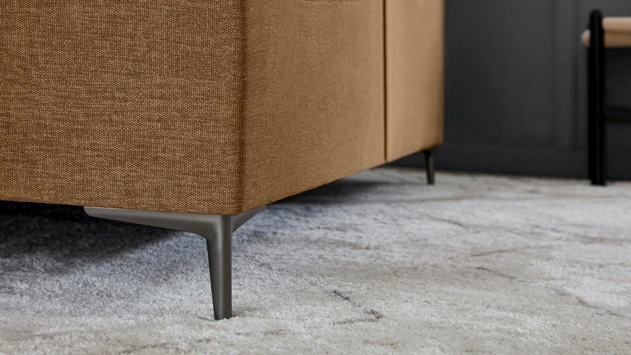 Dit model heeft een grover geweven stof ‘Hopper’ die je kiest in jouw favoriete kleur. Het slanke, titankleurige pootje maakt de boxspringlook helemaal af.