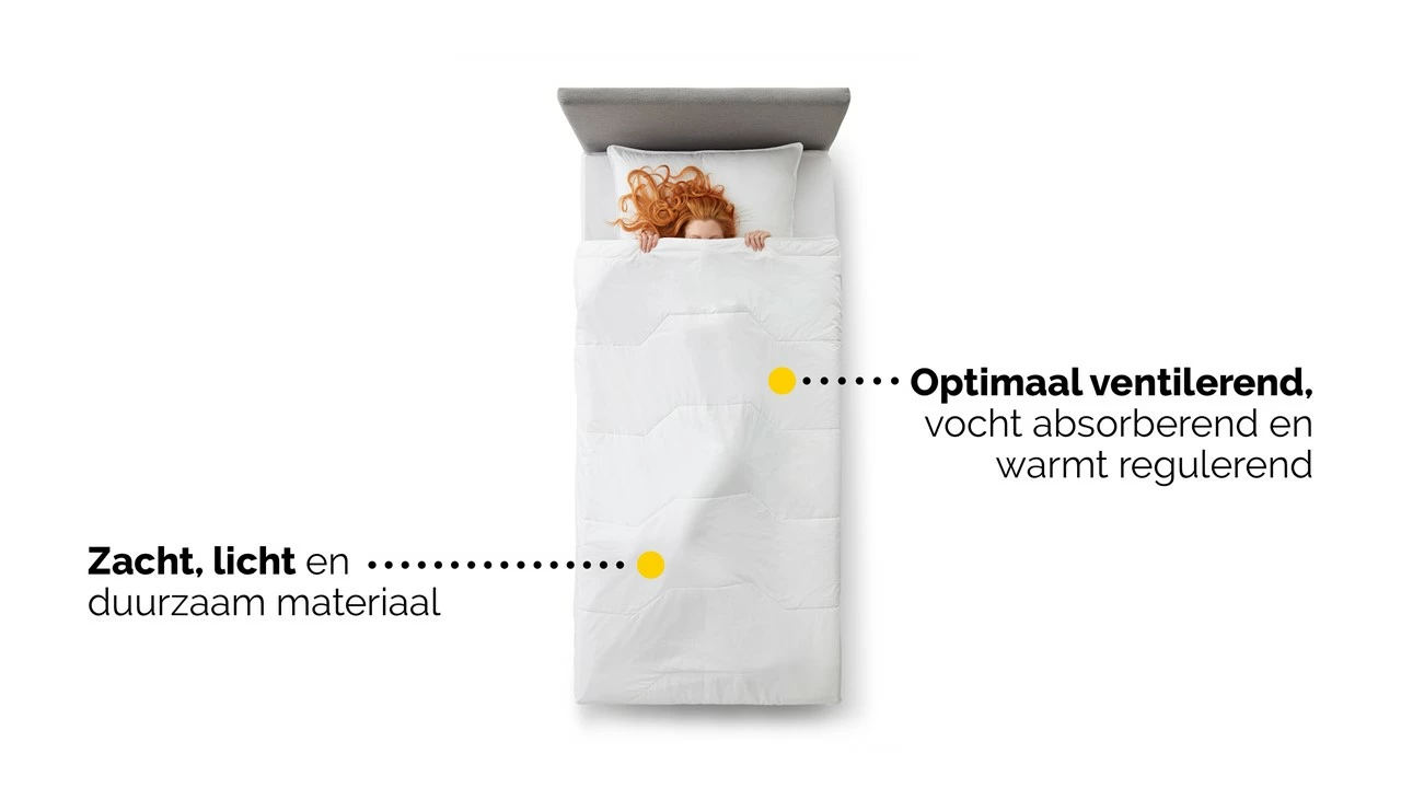 Je nieuwe dekbed wil je natuurlijk zo lang mogelijk mooi én schoon houden. Alle schoonmaakinstructies, evenals de garantie op het dekbed, kun je terug vinden bij de kopjes ‘Onderhoud’ en ‘Goed om te weten’.