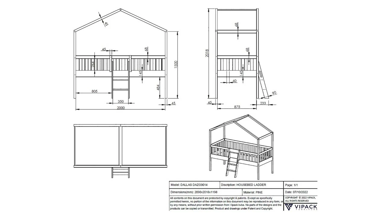 Met Halfhoogslaper Dallas als huis maakt je kind eenvoudig de slaapkamer helemaal eigen. Dit leuke en speelse bed heeft een houten dakframe dat erg makkelijk is aan te kleden met van alles. Daardoor is dit hét ultieme bed om alle kinderlijke fantasieën mee aan te wakkeren. Daarnaast is een halfhoogslaper al een avontuurlijk bed op zichzelf. Dat wordt extra lekker slapen.
