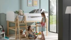 Met de Halfhoogslaper Kiddy creëer je een comfortabele slaapplek en een knus speelhoekje ineen! Het bed is een plaatje dat past in ieder kinderkamer. Dankzij de ronde afwerkingen en de naar buitenstaande poten krijgt de halfhoogslaper een speels karakter.