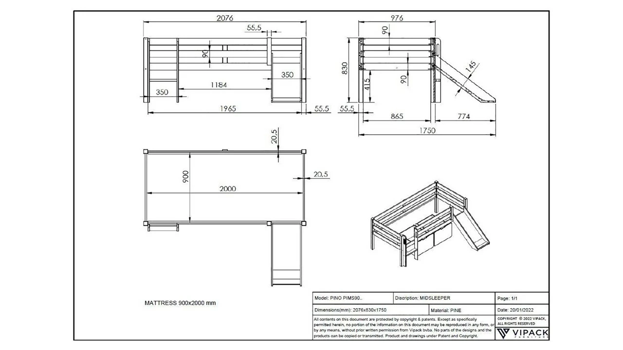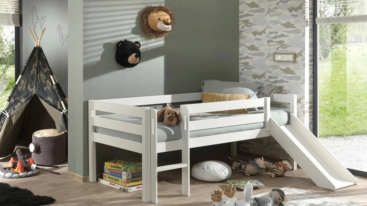 Met de Halfhoogslaper Pino met glijbaan is slapen een heuse beleving voor je kind. Zo hoog van de grond kan je kind de wildste avonturen meemaken. En wat denk je van de fantastische glijbaan die aan de halfhoogslaper vast zit. Daarmee is opstaan een feestje.