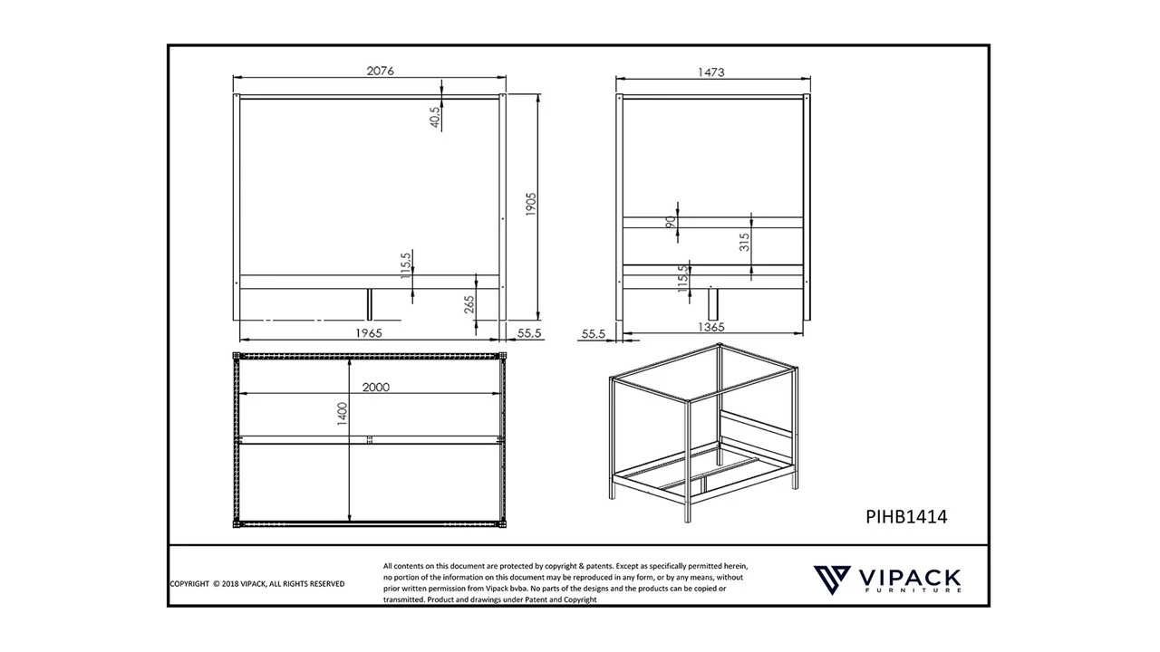 Hemelbed Pino wordt geleverd exclusief bedbodem en matras.