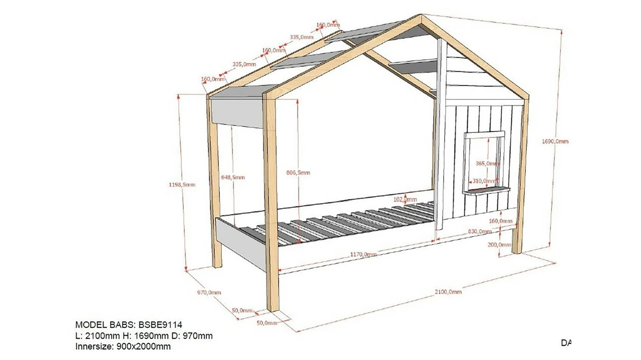 HuisBed Babs 91 wordt geleverd inclusief bedbodem, exclusief matras.