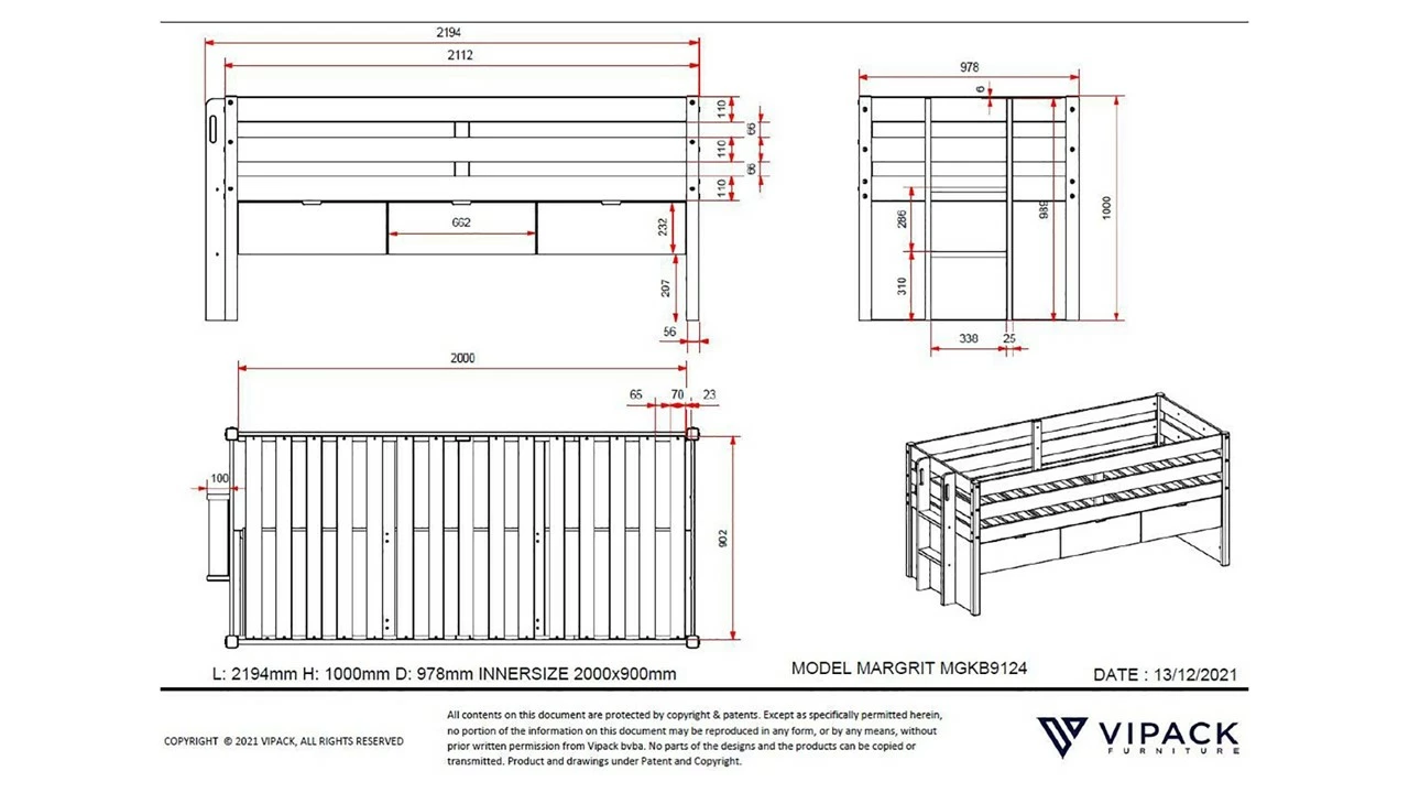 Ga voor eenvoud en rust in de kinderslaapkamer met het Kajuitbed Margrit 91. Dit kinderbed van voornamelijk wit grenenhout blend eenvoudig in op iedere kinderkamer. Het kajuitbed heeft zelfs wat weg van een halfhoogslaper doordat het wat hoger ligt dan een ‘normaal’ kajuitbed. Tevens heeft dit kinderbed 3 ruime laden voor extra opbergruimte. Dit kajuitbed is uit te breiden met Slaaplade Margrit voor een extra slaapplaats.