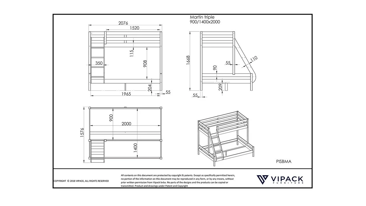 Stapelbed Pino Martin wordt geleverd inclusief bedbodem, exclusief matras.